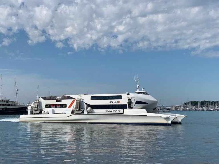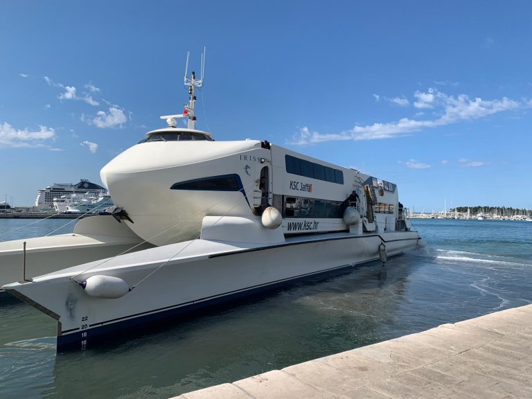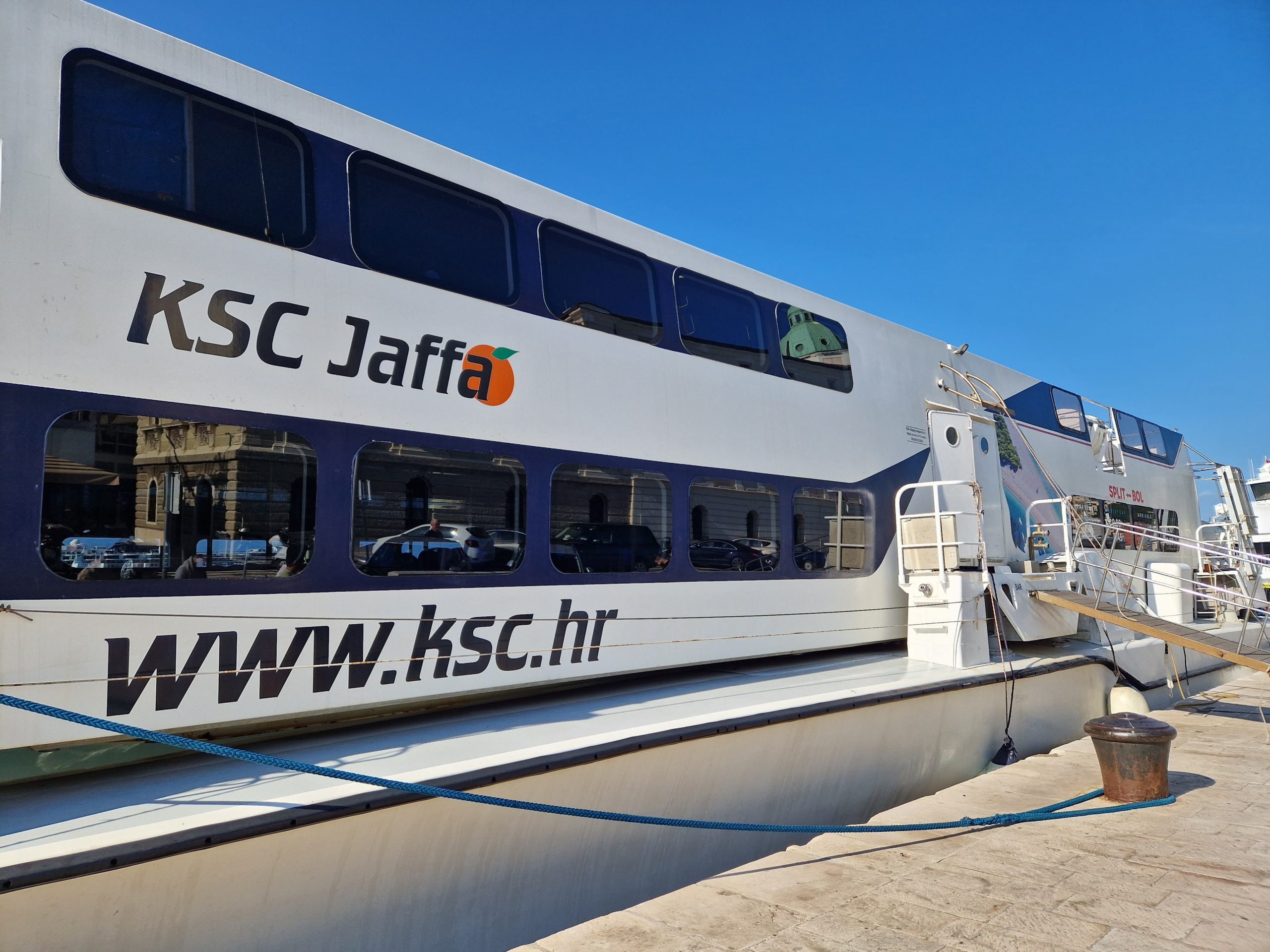 KSC JAFFA Viajando en la ruta Split – Bol (Brač) – Jelsa (Hvar) ¡Compra tus billetes aquí! KSC JAFFA conecta Split con las islas de Brač y Hvar, incluyendo las populares líneas Split a Bol, Split a Jelsa y Bol a Jelsa. Specification Details Name KSC JAFFA IMO Number 8657251 Built 2002 Length 43 m Passenger Capacity 250 Vehicle Capacity Foot passengers only Decks 2 Speed 30 knots Flag Croatia Posición actual del ferry Otros ferries de nuestra flota KSC NARANČAFerry rápido de 34,6 metros de eslora con una capacidad aproximada de 250 pasajeros. Leer más KSC ORANGINAFerry rápido de construcción reciente, de unos 33 metros de eslora con una capacidad de 284 pasajeros. Leer más