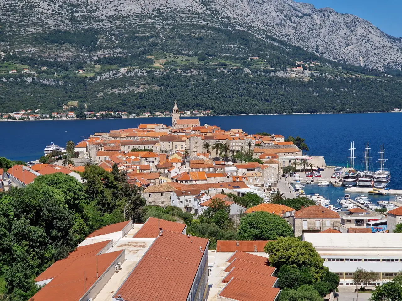 Katamaran pristaje u istočnoj luci u Korčuli, manje od 100 metara od gradskih vrata centra grada. Možete sići s broda i prošetati ravno do srednjovjekovnog srca grada za manje od dvije minute – bez presjedanja ili taksija.